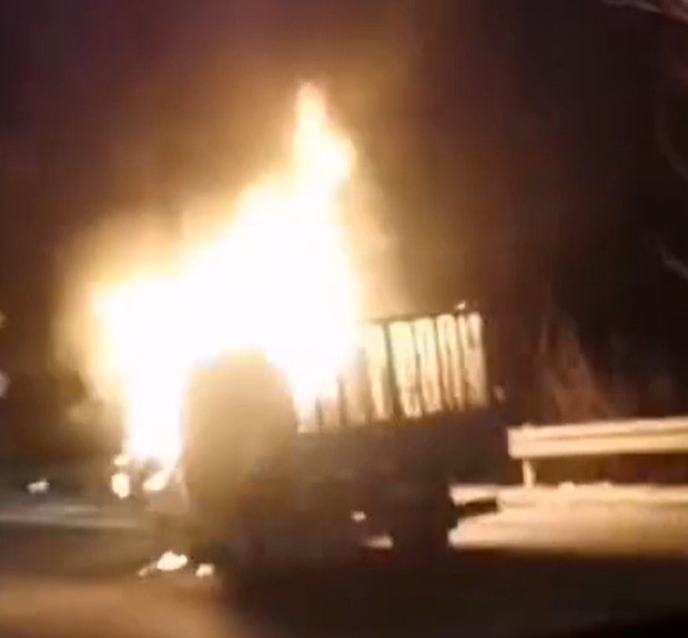 当时,范文旭开车带媳妇回家,在高速上正常行驶时,后备箱突然发出“砰”的一声,有物品爆炸后起火,他赶紧停车。