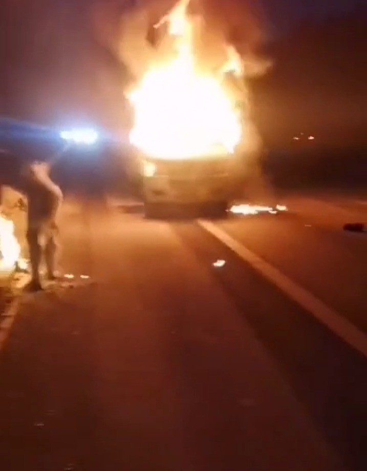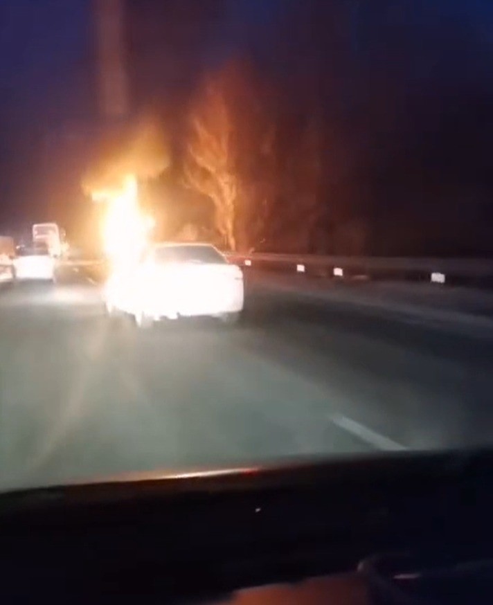 当天下午5点,因为是冬天,天色已经变黑。途经沈吉高速时,他看到路中间一辆小车正冒着熊熊大火。